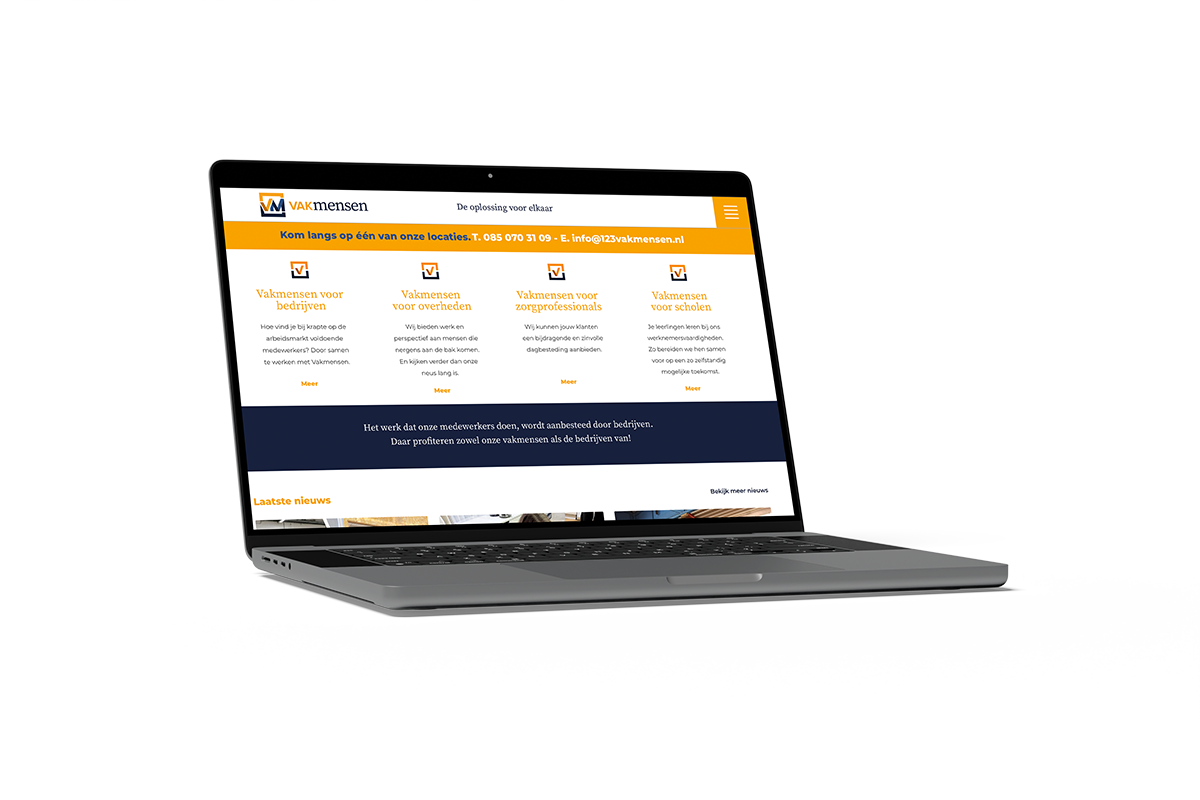 Voor 123vakmensen.nl hebben we een frisse en overzichtelijke website ontwikkeld die vraag en aanbod tussen klanten en vakmensen samenbrengt. Met een duidelijke structuur en gebruiksvriendelijk ontwerp kunnen bezoekers snel de juiste specialist vinden.