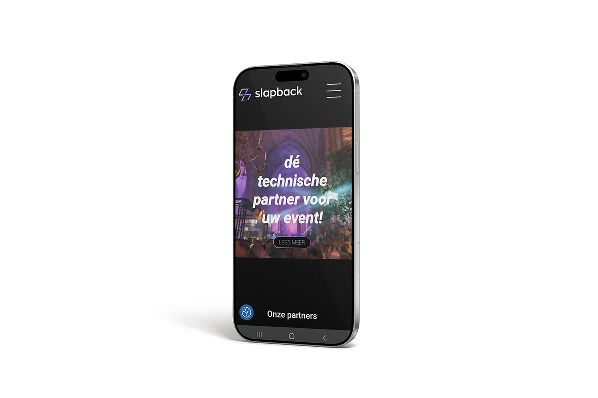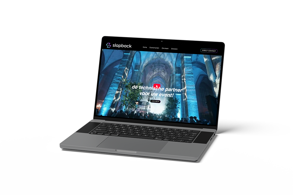 Slapback ondersteunt events, producties en installaties met licht, geluid en techniek. Een bedrijf waar alles draait om beleving en dat moest online direct voelbaar zijn.